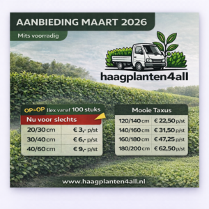 Dat is dan ook de reden dat wij langzamerhand naar een Ilex ( Japanse hulst)-, Portugese Laurier- en taxuskwekerij overschakelen. Vanaf 2026 gaan wij dan ook verder onder de naam HAAGPLANTEN4ALL.